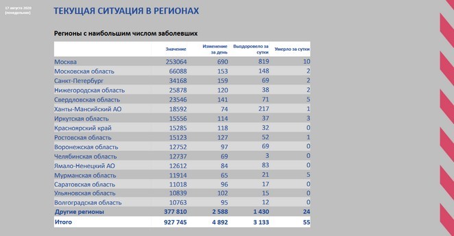 Напомним, регион входит в число лидеров в стране по суточному приросту и общей численности заболевших. По данным оперштаба региона, на 17 августа в регионе зафиксировано 23 546 случаев заражения коронавирусом. За все время выздоровели 19 102 человека, 374 умерли.